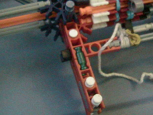 bueno, aquí está. Mi azul barra de tiro, 7 disparos de pistola semiautomática k'nex.Es no más o menos de gran alcance y armas más el automáticos y es muy confiable (a veces falla, pero nunca jams).No es un semi-auto perfecto, porque no puede mantener