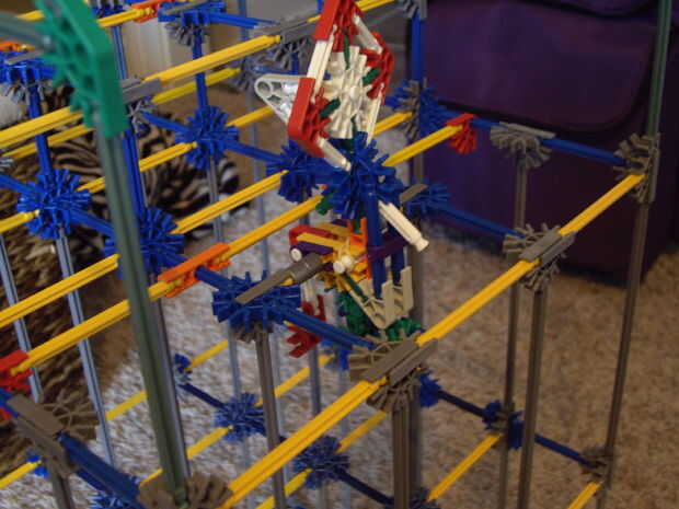 Hola knexers!Este es el último de los 4 ascensores nuevos todos por primera vez en mi máquina de la bola de KVG paradoja.Es un ascensor pequeño que fue utilizado para levantar las bolas de la planta baja de blanco al piso blanco alto, pero se puede u