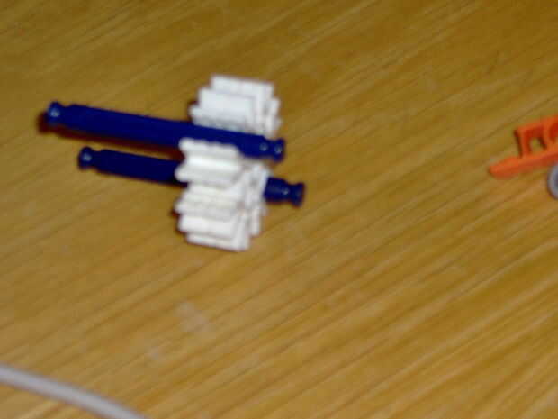 es un arma de simple KVG con desencadenar nuevos lo siento por pequeñas fotos usé mi teléfonoPaso 1: barril acaba de poner conectores rojo 11 en una barra rojaPaso 2: gatillo hacer este 2 conectores naranja sobre una barra blancaPaso 3: manejar! sin
