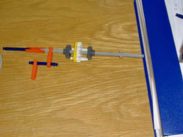 es un arma de simple KVG con desencadenar nuevos lo siento por pequeñas fotos usé mi teléfonoPaso 1: barril acaba de poner conectores rojo 11 en una barra rojaPaso 2: gatillo hacer este 2 conectores naranja sobre una barra blancaPaso 3: manejar! sin