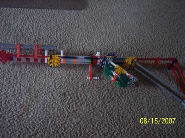 este es mi sniper KVG construí con mi hermano. Es unos 3 pies de largo y tiene una buena gama de cerca de 40 pies con 1 goma.Aquí están los pros y contras:Pros-alta potencia-ligero para su tamaño-fácil de cargar-tiene un mag-robusto-también tiene mag
