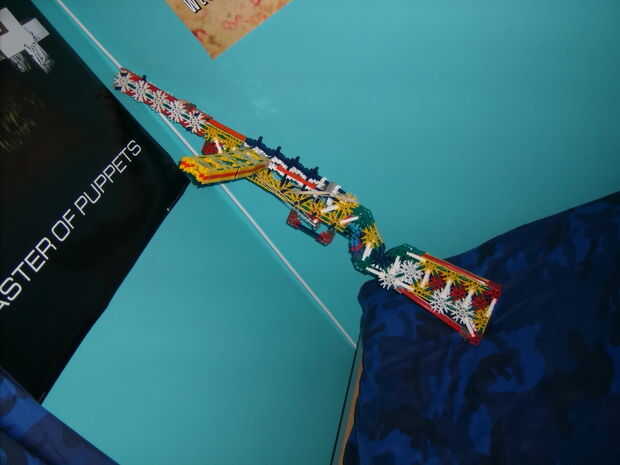 este es mi smg KVG que hice algún tiempo atrás. No es demasiado potente y precisa a larga distancia pero es ligero y fácil de llevar.Utiliza barras de blanco/de plata que caben en la revista pero la mejor anmmo son las barras de amarillo/marrón que p