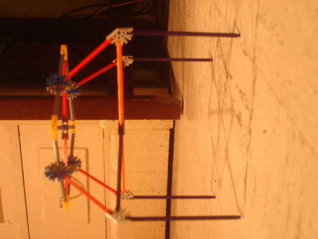 Las partes necesita para conexión son: flaco naranja varillas: 1, flaco púrpura varillas: 6, pitillo rojo barras: 6, skinny gris varillas: 8, skinny azul barras: 1, pequeña ranura azul conectores: 4, ranura pequeña gris conectores: 4, luz gris curvas conectores: 4 pequeñas, pequeño amarillo 90 grados conectores: 4 y púrpura pequeño dos vías conectores: 2