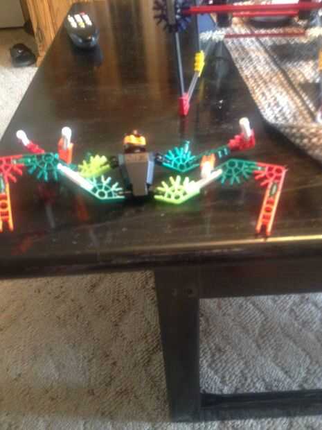aquí es un Jetboot de hombre de hierro hice de KVG. Aquí están las instrucciones. Se supone que se mueven con una cosa de tipo bisagra, pero era difícil de mover lo que conectado simplemente juntos. Ahora se trata de un modelo. También hice algunas m