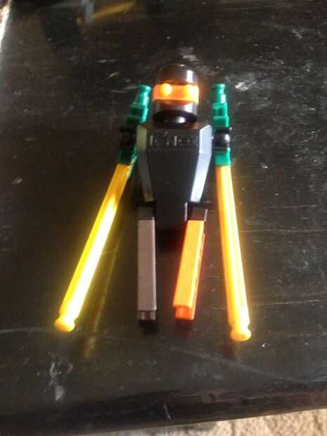 aquí es un Jetboot de hombre de hierro hice de KVG. Aquí están las instrucciones. Se supone que se mueven con una cosa de tipo bisagra, pero era difícil de mover lo que conectado simplemente juntos. Ahora se trata de un modelo. También hice algunas m
