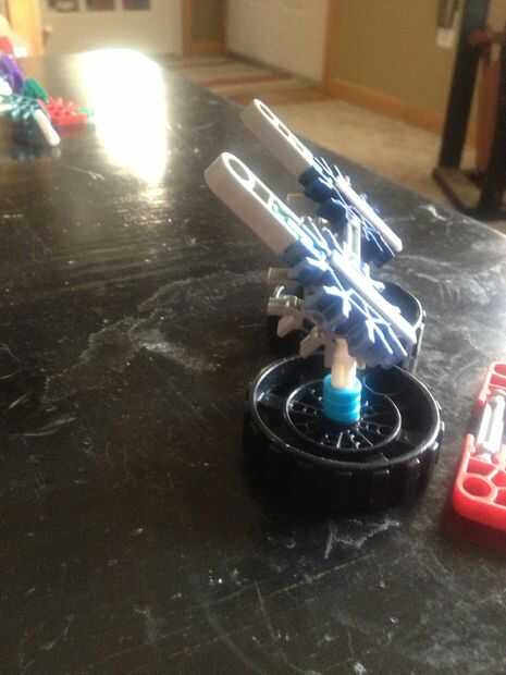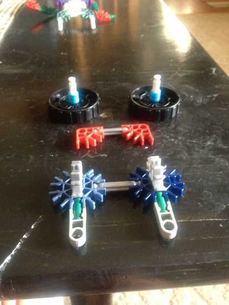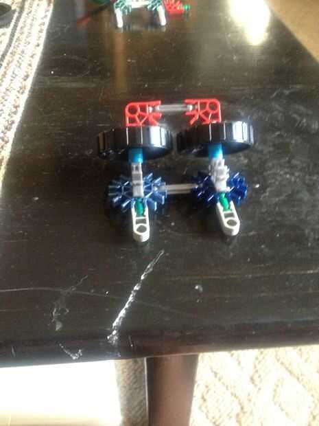 Foto 1: rueda y piernas Pic 2: construir estos 3 Pic: conectar (Asegúrese de que todos los espacios están de este lado de la rueda) foto 4: hecho