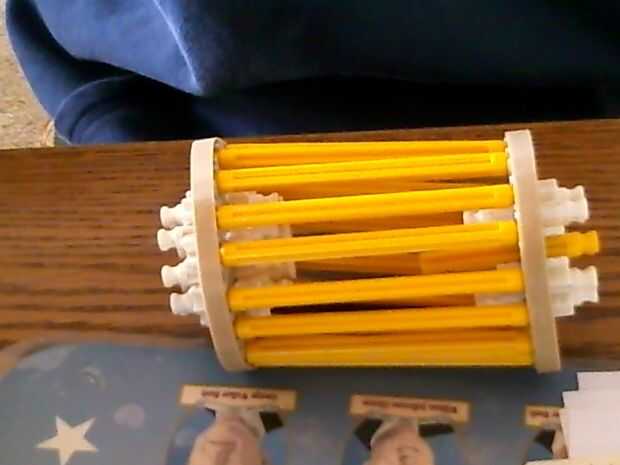 esto es una Granada de vuelta KVG:usted necesitará estos:conecters:26 conectores naranja (usé marrón unos)4 conectores azul metálicosbarras: una barra rojay un viento a hilandero ruedaNota: esta Granada es impresionante y puede afectar laPaso 1: piez