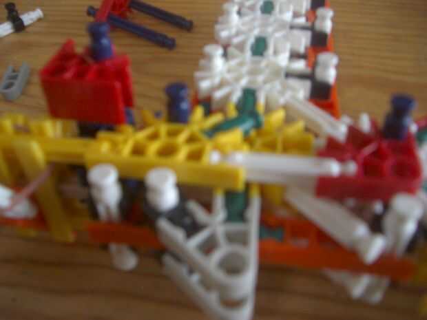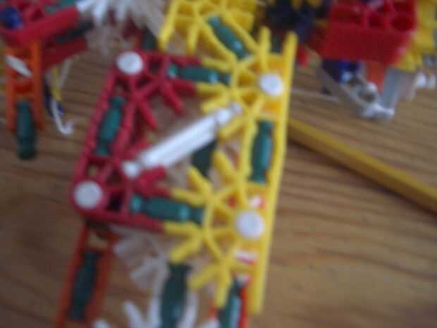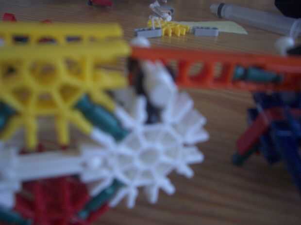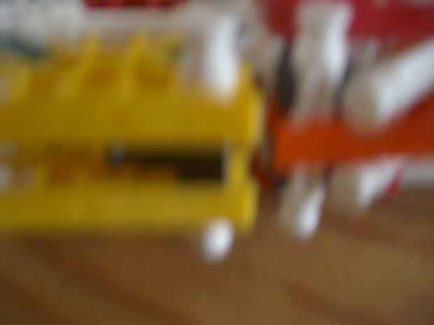 2. Conecte la construcción siguiente con el mango y la mitad de un barril y la pieza con el clip de la naranja y la pieza roja y azul