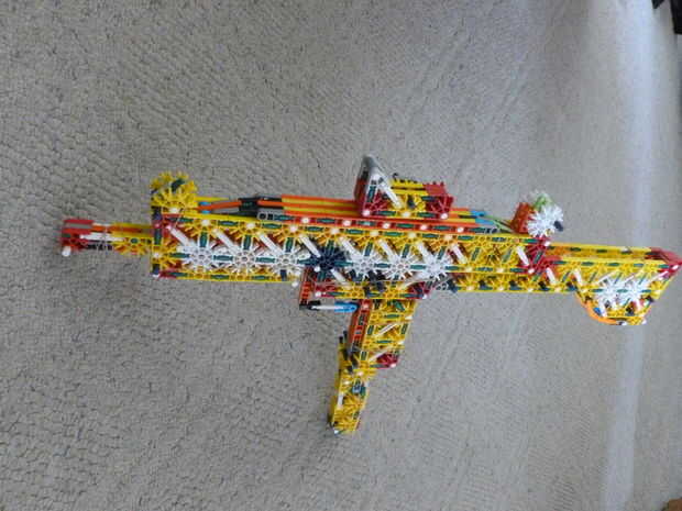esta es mi nueva arma la uzi KVG. BM pide que hago una uzi y no tuve otras ideas así que comencé el trabajo, no es totalmente terminado, ya que necesita algo de trabajo en la parte posterior del mango y alguna idea para que son bienvenidos. Utiliza un perno modificado BM en su mp7 y es un promedio de 45 pies de rango. Tiene una ranura en la parte superior de un visor de punto rojo o cualquier otra vista que desea agregar y también tiene la característica de poder utilizar la barra verde o gris munición conector indistintamente. El mag sostienen conectores gris 15 o 22 barras verdes como munición aunque las barras verdes se atascará más a menudo. Otra cosa buena esta arma puede hacer es carga dos rondas a la vez =) por favor comentario con alguna idea para mejorarlo y votar para esto en el concurso!