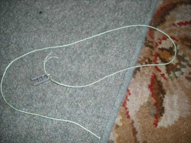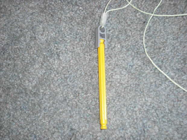 agarrar una forma gris y corbata alguna cadena a través del orificio circular Tenga en cuenta que sería mejor utilizar cadenas mucho más que tengo. Añadir un palo amarillo a la forma gris.