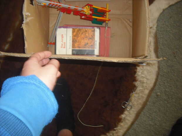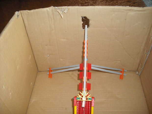 encontrar una caja y poner un agujero en ella por lo que podría poner el arma en podía disparar hacia fuera sin problemas y con la tapa cerrada. poner un agujero en el lado para que tat la cadena del perno puede venir hacia fuera en una línea estrecha. poner la cadena a través del agujero y luego estrecho hacia fuera en la misma dirección que apunta la pistola.