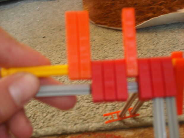 24 requiere KVG piezas, dos pequeñas bandas de goma y algunas pequeñas bandas de goma para munición (trabajo de bandas de refuerzo).Paso 1: El mango Paso 2: Cañón y disparo Paso 3: Mecanismo de carga Paso 4: Juntándolo todo Puede que tengas problemas
