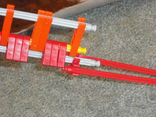 24 requiere KVG piezas, dos pequeñas bandas de goma y algunas pequeñas bandas de goma para munición (trabajo de bandas de refuerzo).Paso 1: El mango Paso 2: Cañón y disparo Paso 3: Mecanismo de carga Paso 4: Juntándolo todo Puede que tengas problemas