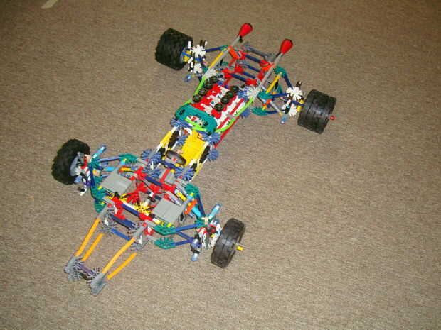 este es un coche de F1 que he construido de KVG. Tiene suspensión independiente y dirección y parece un coche de 1967/1968. La suspensión es realmente la flexibilidad de la KVG bajo carga pero puedes poner muelles reales en lugar de los espaciadores en la suspensión.