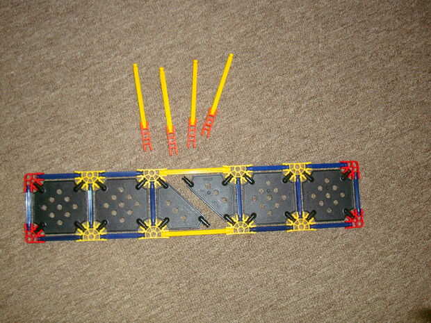 un puente del braguero aseado con un coche y algunas otras cosas para ir con ellaPaso 1: Lista de piezas Rods:Verde: 4Blanco: 4Azul: 2Gris: 12Amarillo: 219Rojo: 82Gris flexible: 9Amarillo flexible: 3Conectores:Gris 1-ranura: 5Gris ranura 2: 18Naranja