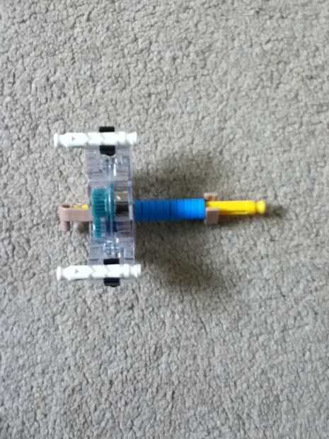 Paso 1: Primero hacen 2 de estosPaso 2: Entonces puso un palo amarillo en el motorPaso 3: Fije los elementos del primer paso como esta en ambos lados del motorPaso 4: Agrega un conector morado y palo verde como se muestra en ambos ladosPaso 5: Ahora