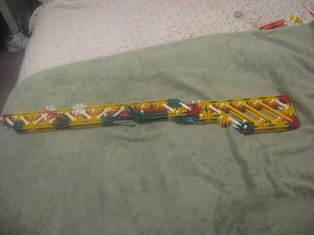 pepinos Hola a todos compañeros Knexers y los recién llegados. mi nuevo disparo, rifle de largo alcance KVG, con alcance real, bípode plegable, verdadero gatillo, cualquier shooter munición, 1,20 m de altura, 110 pies gama con oodammo (conector rojo