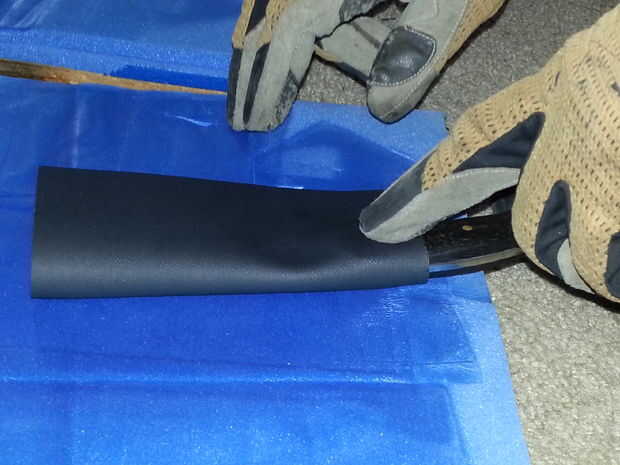 Los guantes que pueden manejar el calor son un básico para mí en este momento. Cuando el Kydex® sale del horno tiene sólo unos momentos antes de que empiece a enfriar y endurecer hacia arriba. Llegar a la prensa y el cuchillo que se moldeo alineados. En este caso hice un pliegue sobre funda para un Boker Tuf®. Una vez cerrada la prensa colocar en ella durante 5 a 10 minutos algunas personas Utilice abrazaderas o correas todas funcionan.