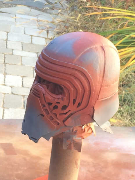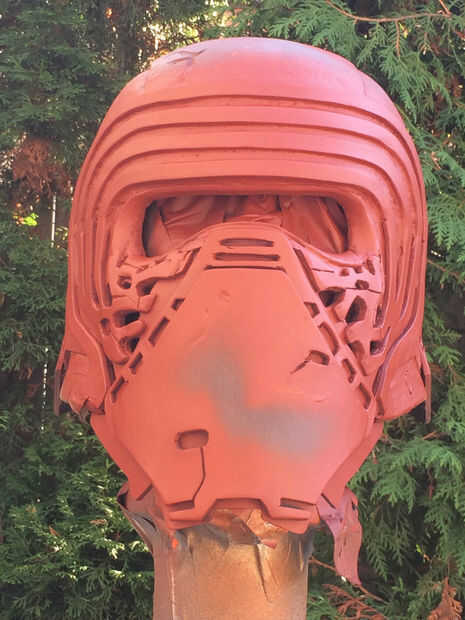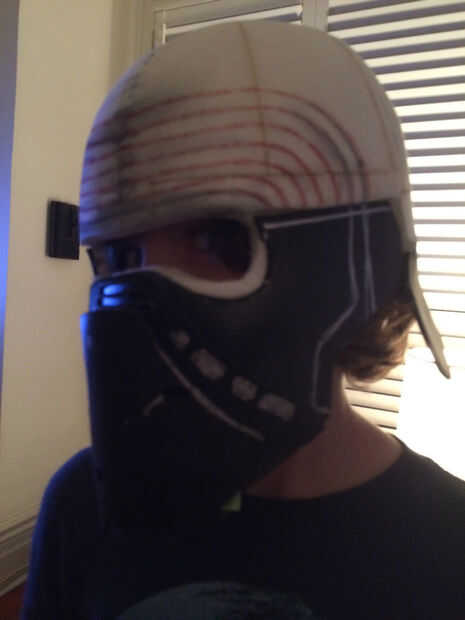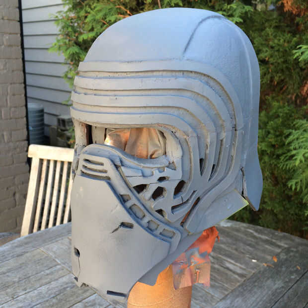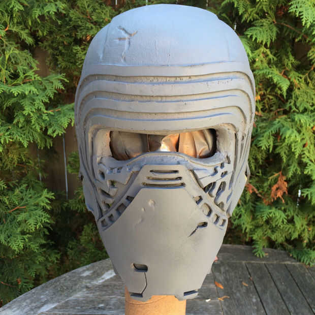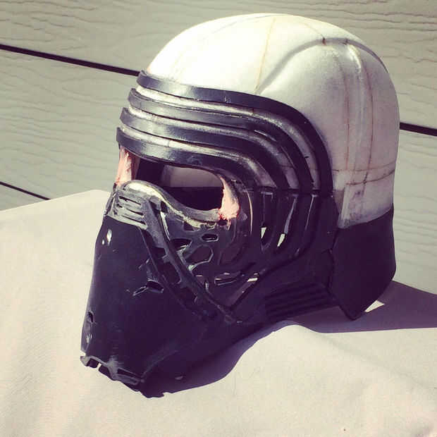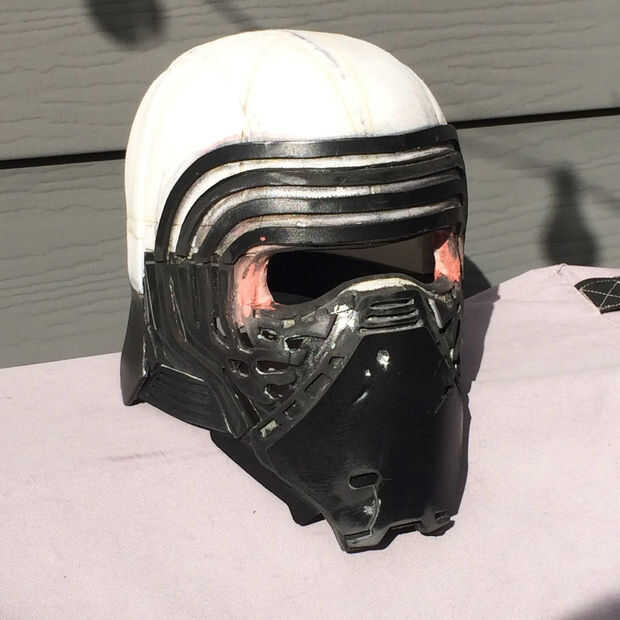 Casco de Kylo es detallado y también asimétrico. El patrón de cromo en su rostro no es idéntico con un patrón ligeramente diferente en cada lado.