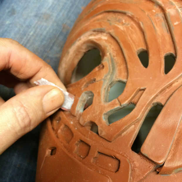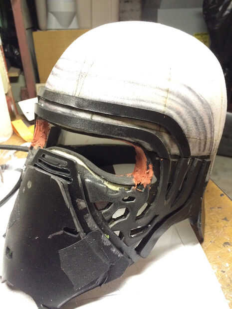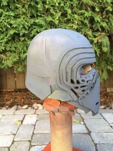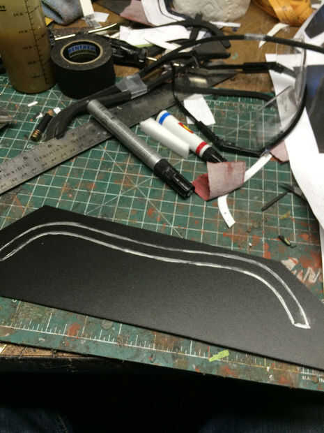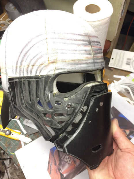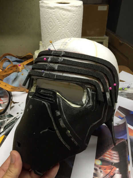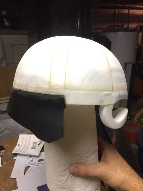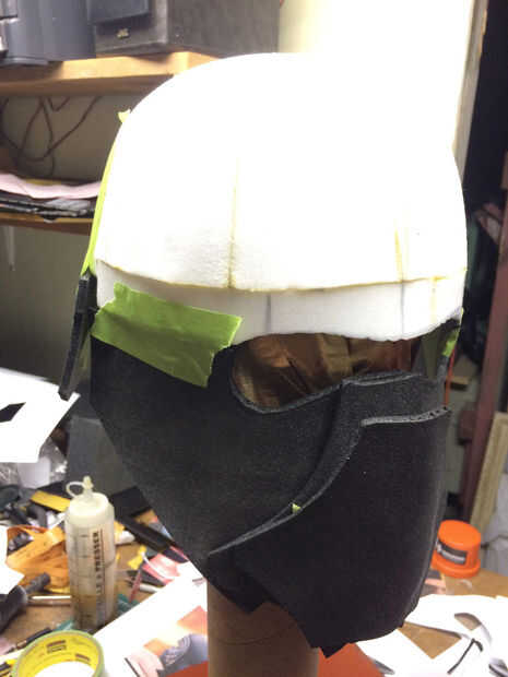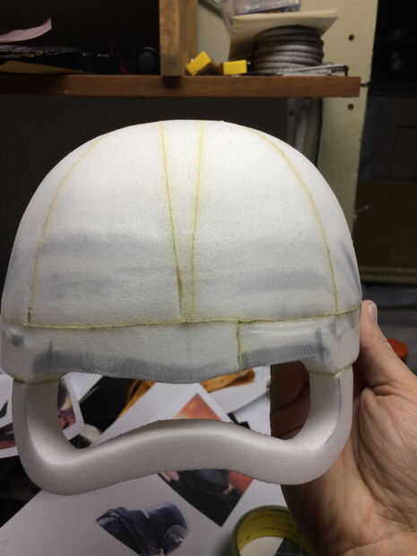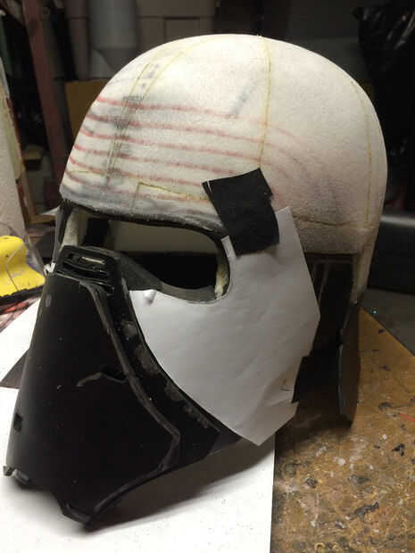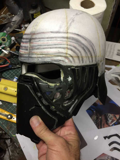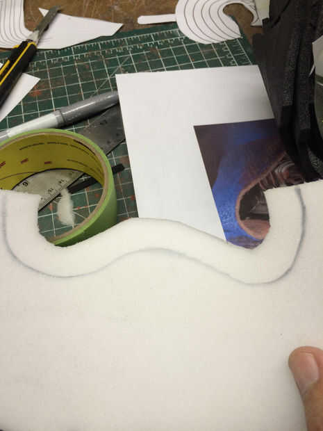 El mismo proceso fue utilizado para crear una forma básica de la cara del casco. Después estaba satisfecho, corte la plantilla de espuma de sintra.