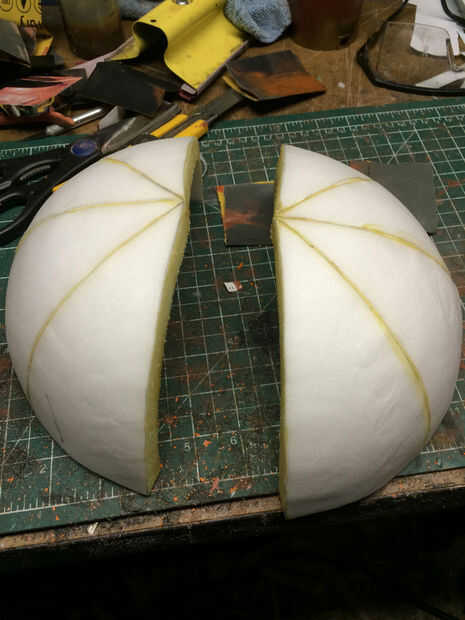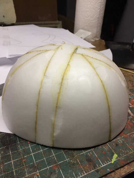 Empecé con una forma de cúpula de 0.5" espuma llamada plastazote. La bóveda se calcula haciendo una media esfera y es 8 gajos pegados juntos.