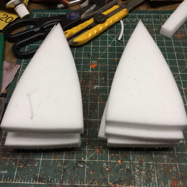 Usando la misma espuma de 0.5", creó un zócalo del ojo básicos que se utilizarán para ayudar a pegamento la cara en el casco.