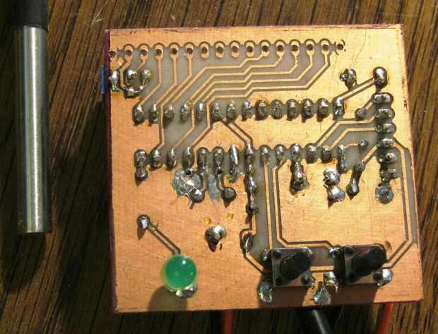 Se trata de una sola cara PCB, por lo que es más fácil para el DIYer hacer. Debido a esto además de algunas consideraciones de espacio, hay algunos problemas específicos. El esquema de Cadsoft Eagle y los archivos PCB están incluidos.
