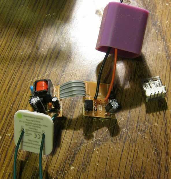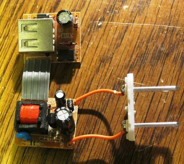 He quitado las lengüetas de la AC y el conector USB y reemplazándolas con los cables. (ver imagen)