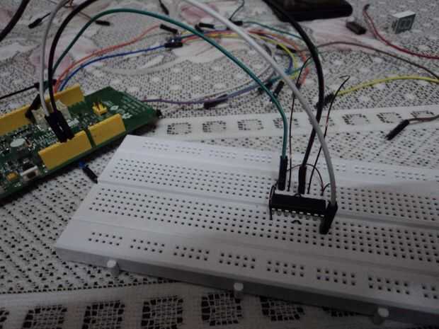 Arreglar todo como se muestra en la imagen. Deje algunos cables para motores y la batería. Trabaja sobre el concepto de puente en H. Puente en H es un circuito que permite que el voltaje a volar en cualquier dirección. Como usted sabe que voltaje necesita cambiar su dirección para poder girar el motor en sentido horario o antihorario, ahí puente H IC son ideales para conducir un motor de corriente continua.