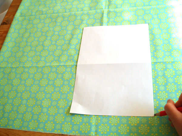 1. Ponga el A4paper con su lado corto junto a doblar. El centro del papel debe estar en el centro de la tela. Marca las esquinas.