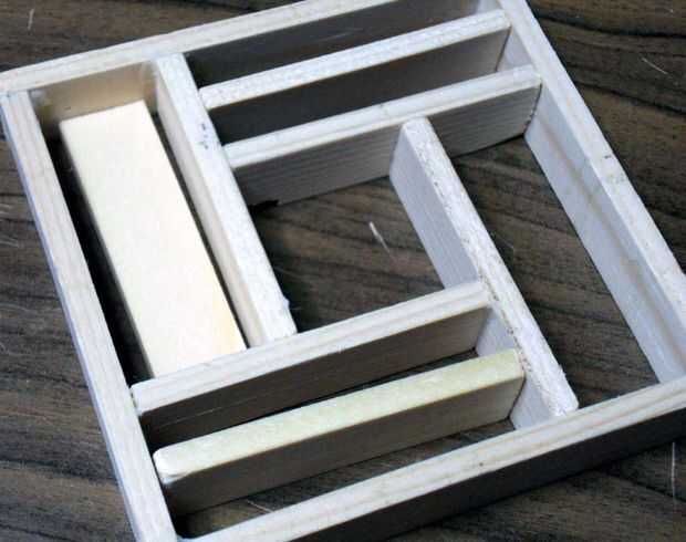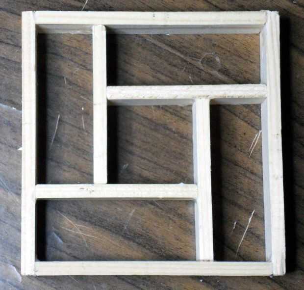 Acaba de empezar pegando la plaza exterior. Esto es bastante sencillo y puede ser fácilmente mantener en su lugar por un soporte en ángulo o similar. Luego pegue las partes internas a partir de un borde y usar las piezas para los otros bordes como espaciador. Mira la quinta fotografía para ver donde las piezas individuales son empujadas a.