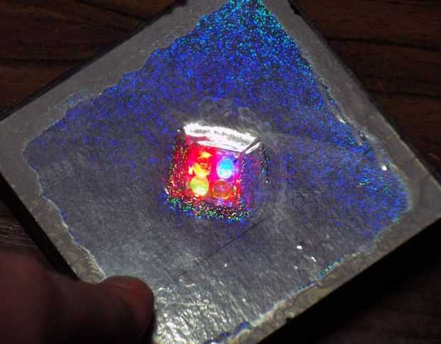 O utilice algunas arco iris RGB-LED. Estos cambian el color automáticamente y no necesita ninguna electrónica adicional. Pero bueno, que seguramente no mejoran nada, es sólo para niños.
