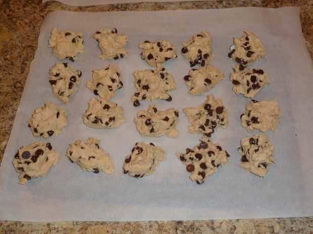 Usando una cucharadita redondeada pasta de la galleta de la gota en una hoja de galleta alineada engrasada o pergamino.