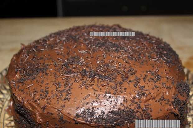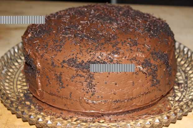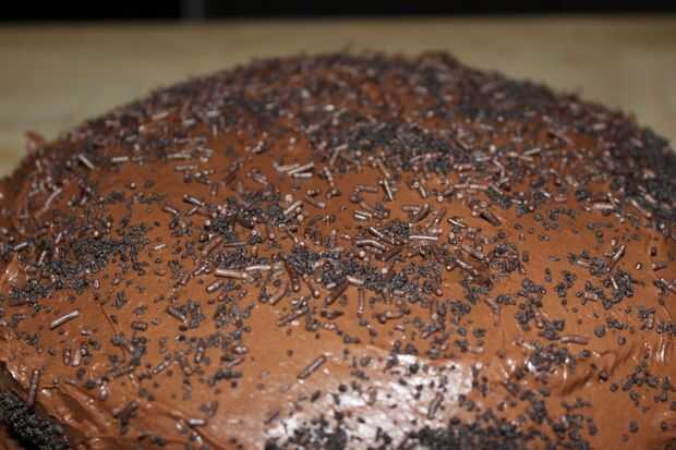 ** Me quedo sin azúcar en polvo hacer mi helar así que utilicé una lata de glaseado de chocolate y había espolvoreado el pastel de los lados y tapa con galleta de migas y chocolate rocía.