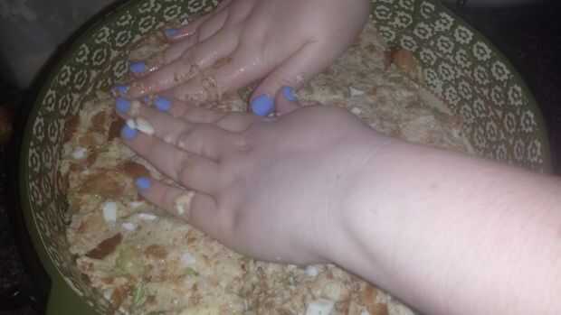 Llene la olla con la mezcla. Asegúrese de extender uniformemente la mezcla en la bandeja para hornear igual.