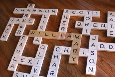 También tenía que trabajar con la función de creador de puzzle un poco, hasta que encontré uno con sus nombres, luego alteré el diseño un poco, barajando sus nombres al centro. Básicamente era mucho como jugar Scrabble.