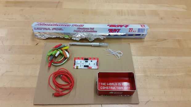 La alarma de operado Makey Makey es una alarma creada utilizando artículos del hogar, un makey makey y un ordenador. Es una construcción simple que probablemente llevará a tú alrededor y horas para crear.Paso 1: materiales:2 tablones de madera de bal