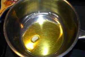 1 en una olla calentar el aceite y el ajo hasta que quede un bonito color dorado. Use temperatura baja o terminarás quemándolo.