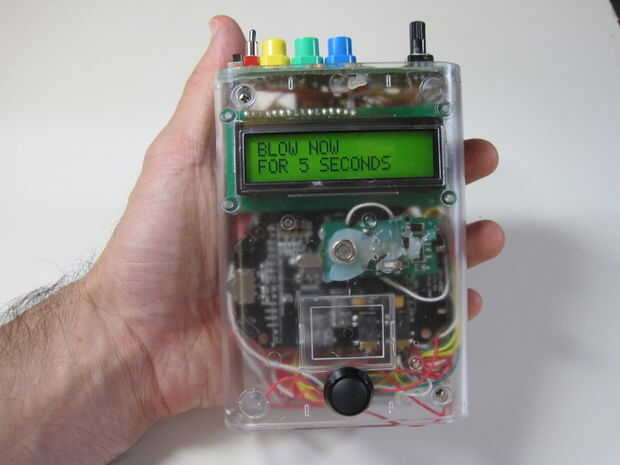 Un alcoholímetro personalizable que habla y te dice cuánto has tenido que beber. También es de código abierto y puede modificarse fácilmente con su propio texto en el LCD la pantalla y audio de archivos MP3.