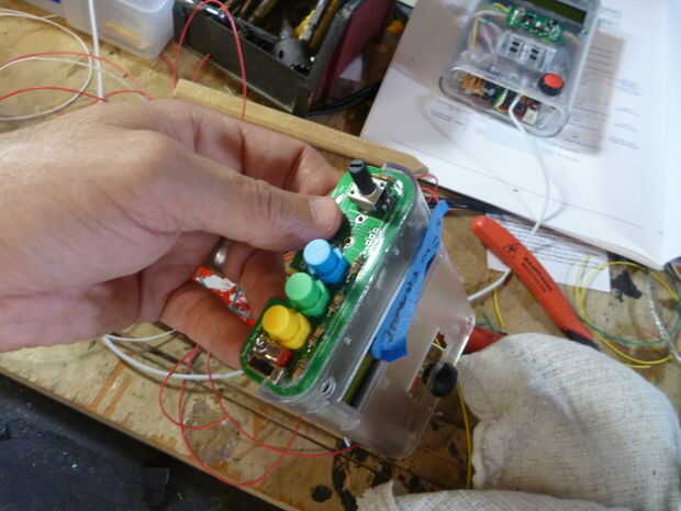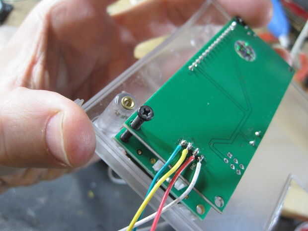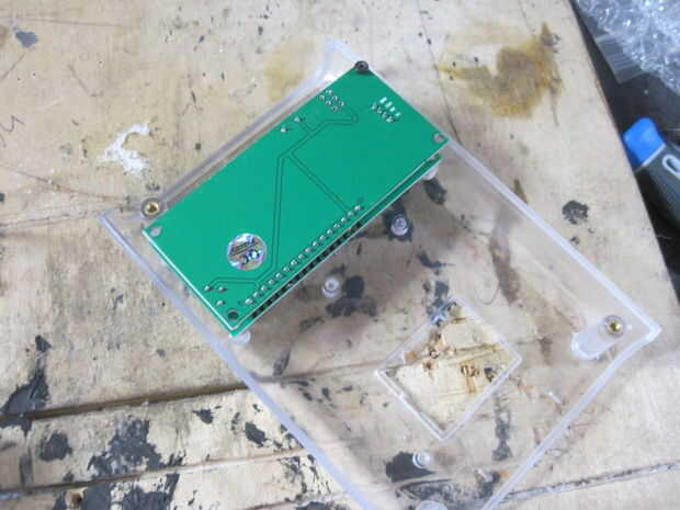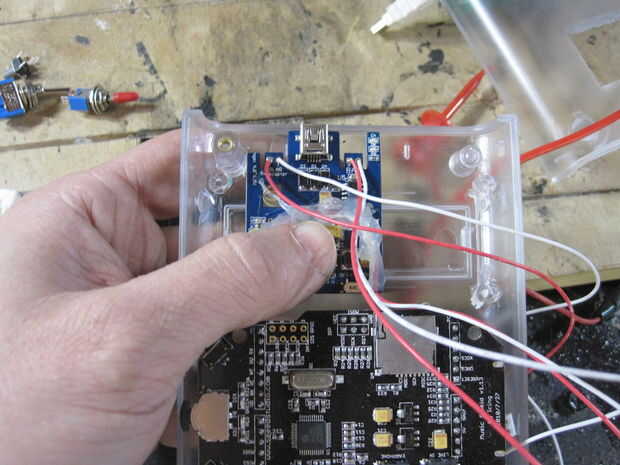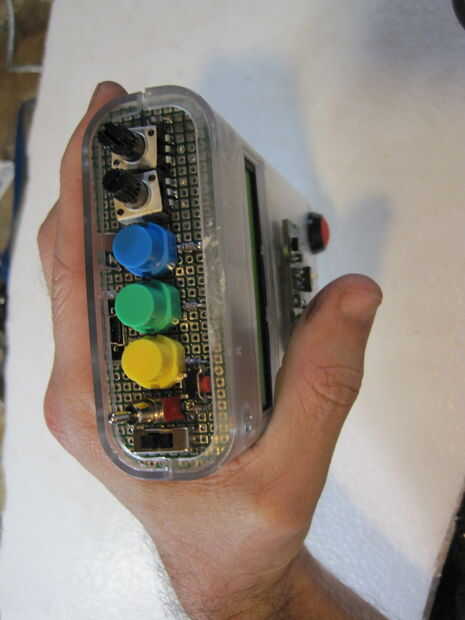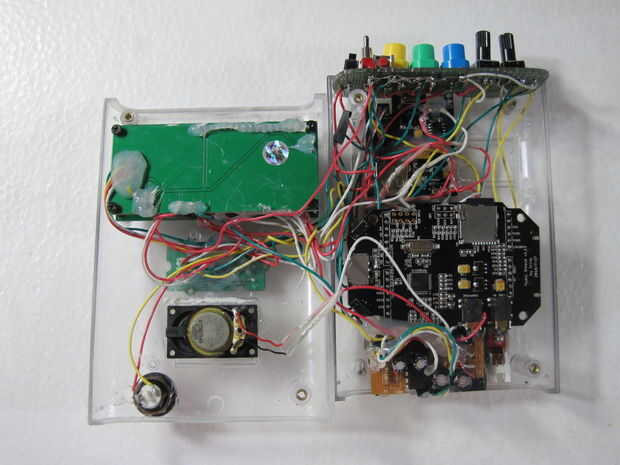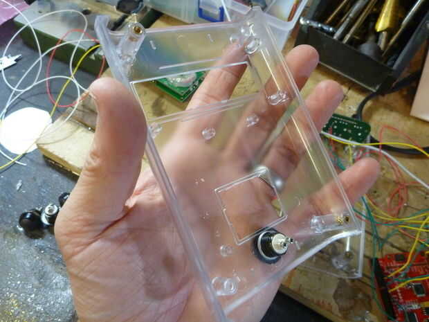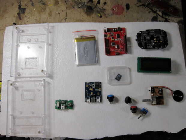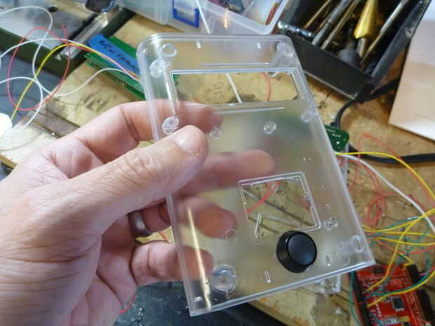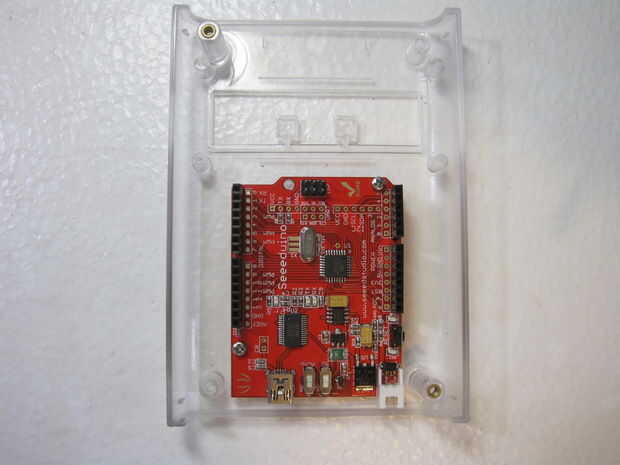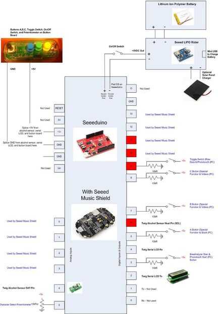 Assemble following the schematic below. El montaje y el diseño variará dependiendo del recinto que está utilizando. Me caso de Arduino de Adafruit pero tenga en cuenta que la pantalla LCD Serial utilizado por Seeedstudio es un modelo antiguo, el nuevo LCD Serial de Seeed no caben en este caso por lo que tendrás o necesidad de encontrar un caso más grande o ir con una LCD Serial alternativo. Tenía una placa PCB personalizado hecho pero usted puede apenas como fácilmente utilizar una placa proto genérico y simplemente cortar la forma que necesita. Este video describe los componentes de la alcoholemia hablando.