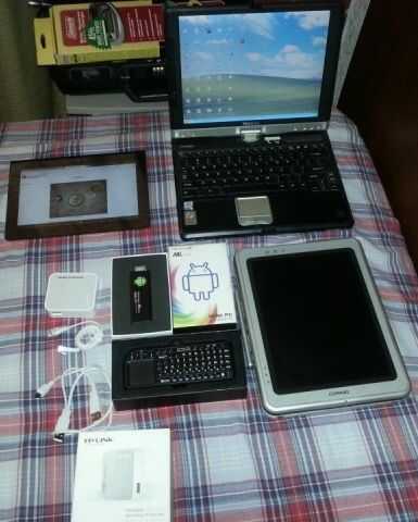 OK, aquí es donde yo realmente "se desvían de la norma". Además de las comunicaciones de manera estándar dos, también incluyen un pequeño wifi Router (TP-Link Portable 3 3,00 Wireless N Router), un Sony tablet S, además de algunos ordenadores portátiles (tablet PC) y un 1 Terabyte USB disco (no se muestra) que tiene todas mis fotos, Home Videos y un montón de películas, libros electrónicos y música (MP3) que he recopilado a lo largo de los años. Usar el Router para transmitir los archivos / películas / música a cualquier wifi activado teléfono o PC nos lleve! También lo uso para controlar las cámaras IP que son parte de mi sistema de seguridad.