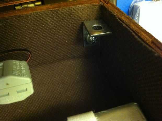 Además, usted querrá colocar un metal en las cuatro esquinas de la tapa de la caja para que los imanes se pueden unir a ellos (esto es para la tapa) esto se puede hacer utilizando unos tornillos largos, o usted puede utilizar los soportes L metal como yo lo hice.