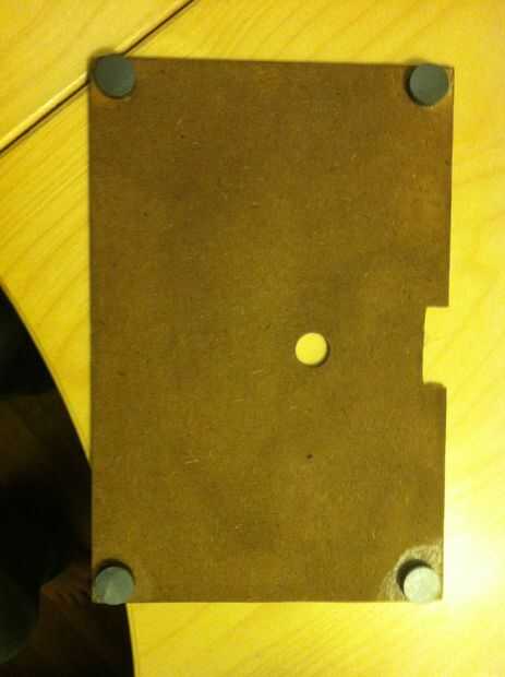 Corte un orificio de acceso con su Dremel así que usted puede sacar la cubierta. También corte un agujero cuadrado del tamaño de tu servo HS-55 por lo que puede caber a través de.