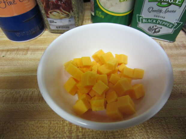 1 la mitad de la pulgada rebanada de queso cheddar cortado en 20 mini 1/2 pulgada en cubos