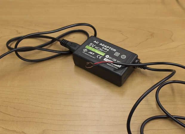Conectar tu Arduino Uno junta y sensor escudo a una fuente de alimentación. Realmente intenté modificar un barato, fuente de alimentación de 5V que ordené desde China, pero fue demasiado poder. (Una mejor fuente de alimentación de 5 voltios de calidad debería funcionar bien.) En su lugar utilicé la primera de ellas que se muestra a continuación (conectada a Arduino), y funcionó a la perfección.