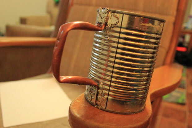 una noche hacía sopa y miré en la lata y pensamiento. "Sabes, estas latas son realmente útiles y que sería una pena malgastarlo." Usar latas para plumas y lápices, notas y papel e incluso uno hacer pelotas saltarinas. Así que pensando de lo que podía hacer con el poder que una vez contenía sopa venía con una idea para una novedad similar a algo que se vería en un mundo apocalíptico en el post, y así nombré esta creación extraña la apocalypticup.