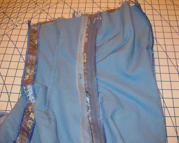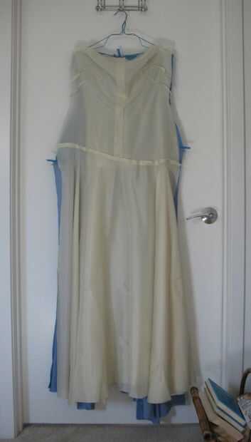 Este vestido está forrado dejando caer un vestido duplicado dentro, dejando los bordes crudos en la parte superior. Al completar el corselette, será cosido a lo largo del borde superior y adjuntar todos esos asquerosos bits raws.