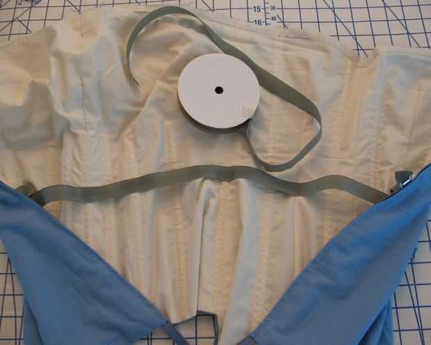 El corselette también necesita una estancia de la cintura, así que agarró un carrete de cinta del grosgrain y fue a trabajar. Esta característica adicional facilita mucho zip una costura lateral cerrada!