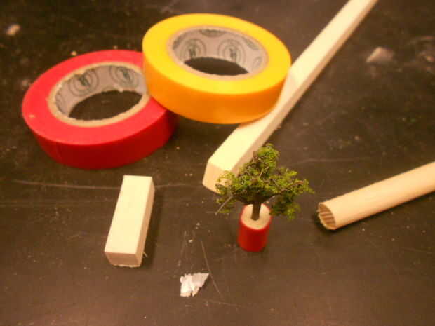 Corte tacos de cuadrado y círculo y pegarlas con cinta de PVC colores, poner CE-arbustos en él. ¿No es simple?