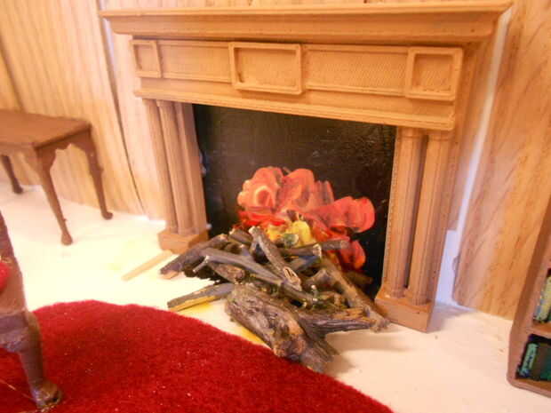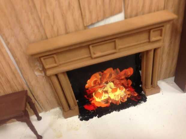 Impresión de una chimenea fue un trabajo sencillo. Decida donde quiere fijar en la pared y luego pintar con color negro antes de que pegue. Puede pintar el fuego de la chimenea con color rojo para hacer que el fuego se vea real. Espera un rato dejar seco y luego se puede pintar con el color naranja y amarillo. Asegúrese de que se vea natural. Después del secado, puede poner "muerto eco-objetos de madera" delante de la chimenea como leña. Si no eres capaz de comprar madera entonces puede simplemente corte los pasadores de madera (a mano, no corte) y color con una pintura arbitraria.